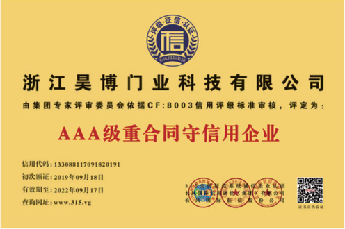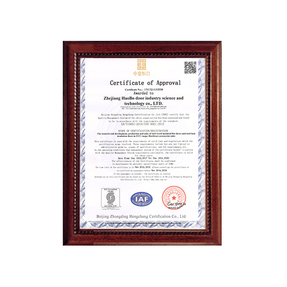 公司一直以來嚴格執(zhí)行ISO9001質(zhì)量體系和ISO14001環(huán)境管理體系標準,建立了完備的科研、開發(fā)、生產(chǎn)、銷售服務體系。公司是浙江省門業(yè)協(xié)會會員單位,江山門業(yè)協(xié)會理事單位,中國木材與木制品流通協(xié)會會員單位,江山市消防協(xié)會副會長單位。